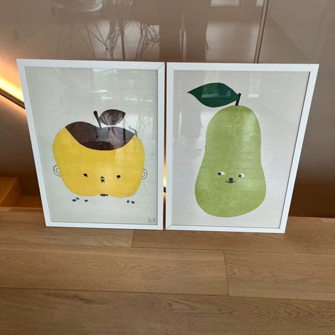 Kjempesøt ramme med tekst som passer til liten gitt. 3 små rammer inni den store, disse festes med magnet, hvor du kan ha bilder inni.