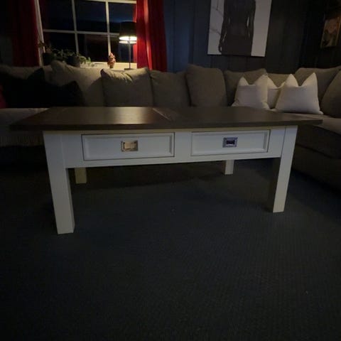 Tøfft bord av resirkulert tre og stål bein fra bohus. Kostet 5000 når vi kjøpte det for noen år siden.
