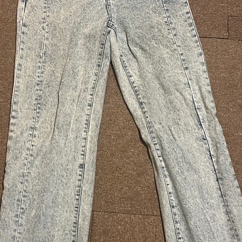 Superfin wide jeans i lys vask. Buksen er kun brukt en gang, og er størrelse 29, med beinlengde 30. Materiale: 100% bomull. Jeg sender stort sett første virkedag etter mottatt penger for frakt :)