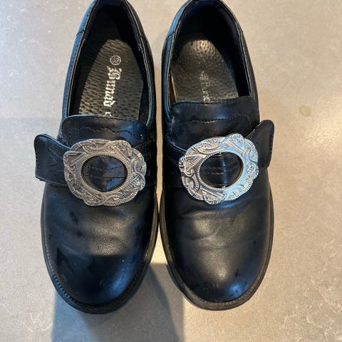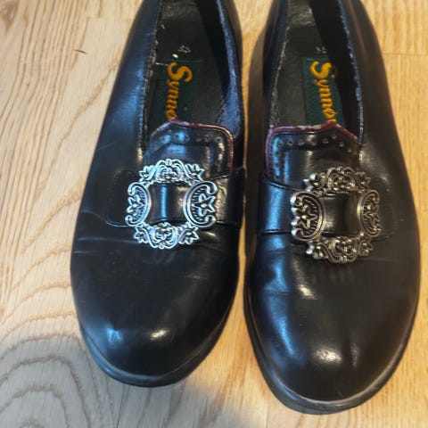 Brukte bunadssko, normal slitasje. Str. 34, kr. 60,-