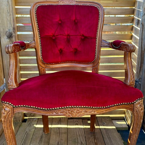 Flott og stilfull gammel stol vurderes solgt. Perfekt stand.
