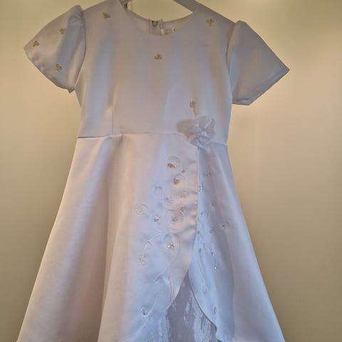Fint kjole brukt 1 gang. Liten i str. Passer mer for jenta med str. 128. Kan brukes på Halloween som brudekjole
