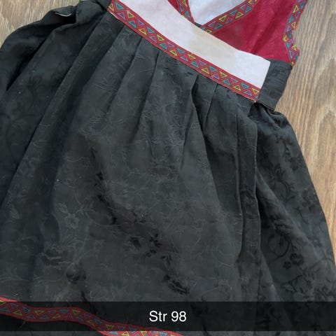 Bunadskjorte str. 3 år og tilhørende bunad (litt usikker på størrelsen) selges. Søljer medfølger ikke.