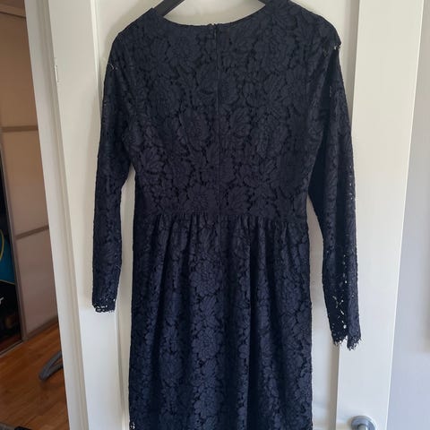 Lekker marineblå kjole fra Marie Philippe. Pent brukt, ren og fin. Normal på størrelse og glidelås bak.