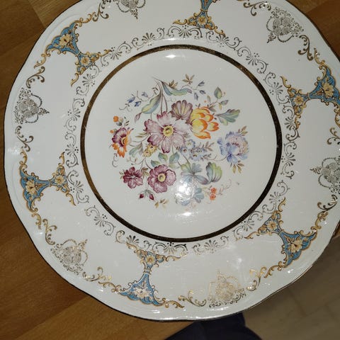 Nydelig fat modell Wenche.Helt og fint,ingen krakkelering.Har en bitteliten brun flekk(hvis en skal bemerke noe) vises på bilde 4.