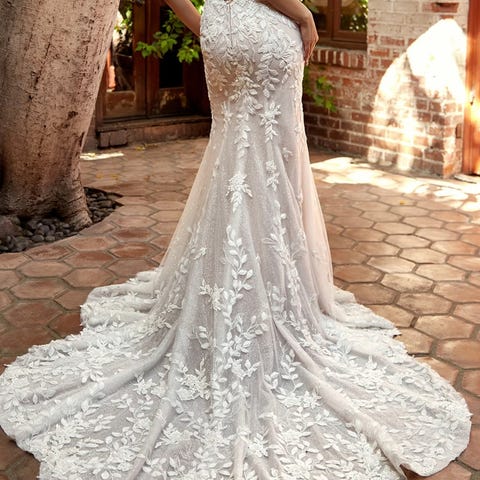 Selger også tilhørende ubrukt slør (ikke brukt grunnet mye vind på bryllupsdagen).