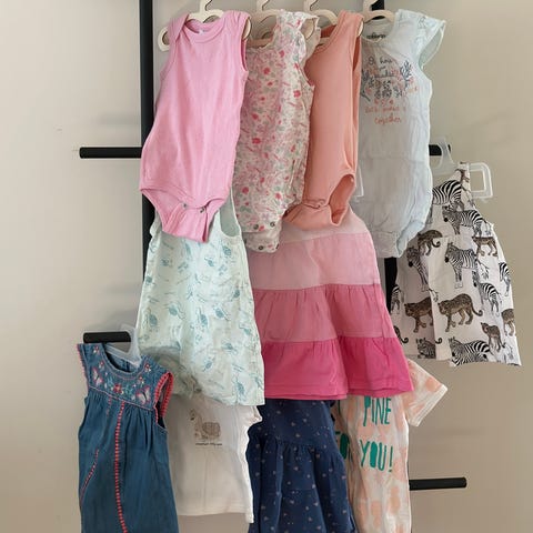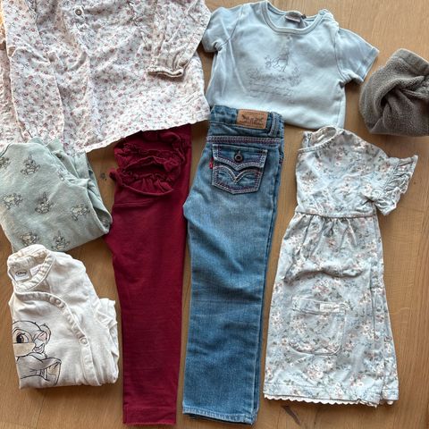 Finkjole, ytterjakke, to dongeribukser (lapper på alle knærne), snekkershorts, ullgenser, pysj, innejakke, to tynngensere, fire t-shorter, fintopp, singlett, ulltrøye, lue, strømpebukse, div. sokker.