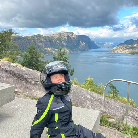 Selger vår lite brukt sikkerhetsdress i skinn til barn, størrelse 8.