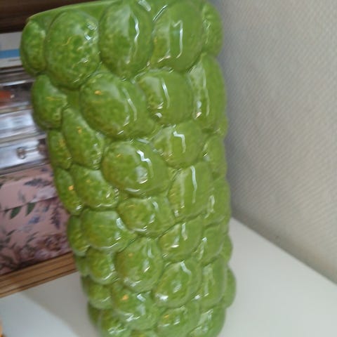 Grønn vase, formet som en kaktus. Vasen er kun brukt på visning.