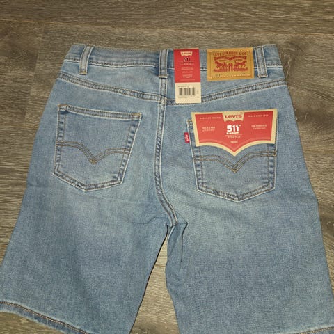 Str. 14 år – Levis jeansshorts. NY med slipp (nypris kr 549). Fin vask som er noe lysere enn bildene.