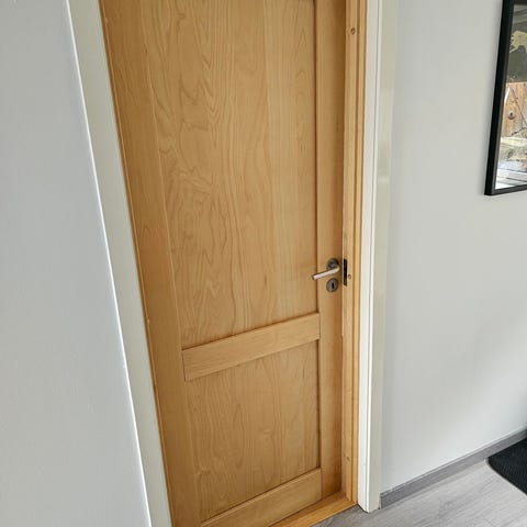 Innvendige dører hvor 2 stk er glatte med målene 2.10 m x 0,80 m.
