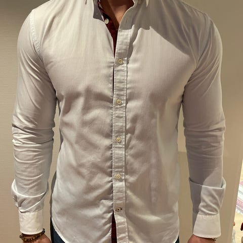 Herreskjorte fra Jack & Jones premium, brukt én gang av min sønn. Skjorten er lyseblå med blålilla detaljer på innside, veldig fin. 100 kr + frakt 69 kr eller fiksferdig.