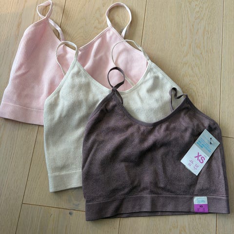To fine stretchy ribbestrikkede singleter/topper/croptops selges da fargene ikke blir brukt. Jeg har de også i hvitt, grønt og sort som jeg bruker ofte og som har holdt seg fine i mange år. De er like fine alene, men også både under andre plagg og over hvite skjorter!