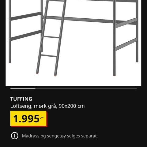 NB! Sengen har stigen på venstre side, men det er mulig at den kan plasseres etter ønske.
