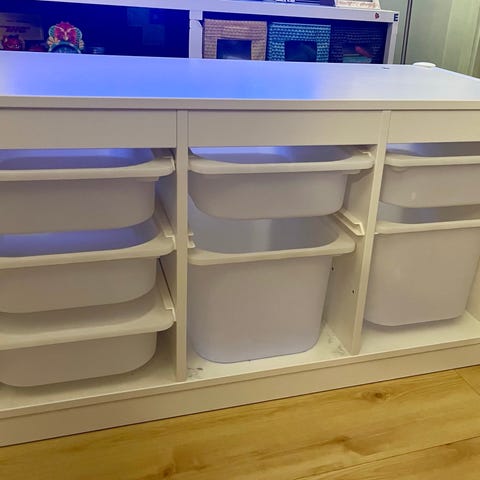 IKEA barnemøbel med oppbevaringsbokser i flere farger