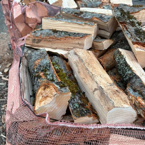 Storsekk med tørr ved, furu eller bjørk