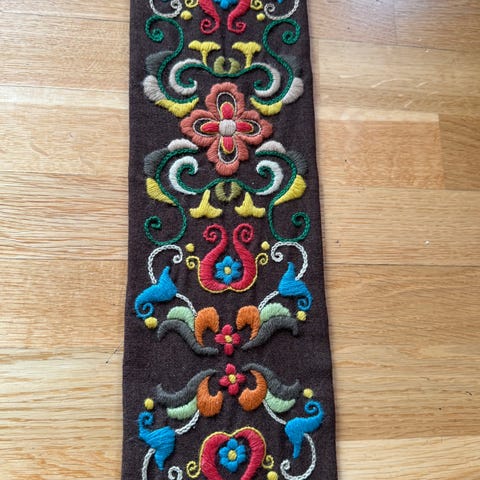 Vintage brodert veggteppe/klokkestang
