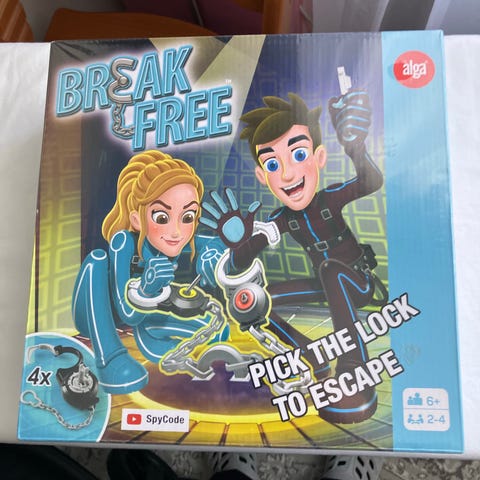 Du er en hemmelig agent! Din oppgave er å komme deg løs og rømme - raskest mulig. Det gjelder å finne ut av låsen og komme seg løs – BREAK FREE! Og å komme seg rundt den banen eller utføre den aktiviteten dere er blitt enige om i forveien. Den som har flest poeng etter 3 omganger vinner hele spillet. BREAK FREE kan spilles hvor, når og på hvilken som helst måte og passer like godt innendørs som utendørs. Det handler om å være smart og rask, tåle stress og ha god følsomhet i fingrene. Hvilken låsinnsats dere velger bestemmer vanskelighetsgraden. Grønn er lettest, gul er middels vanskelig og rød er den vanskeligste. Låsinnsatsene med samme farge er også forskjellige fra hverandre, så det er i alt 12 ulike låslabyrinter. Det går an å spille BREAK FREE på mange ulike måter.