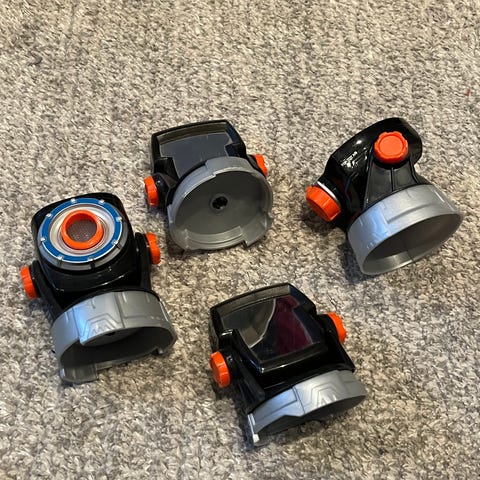 Laserspillet inneholder to blinker og to blastere. Hvis dere vil spille mot hverandre som lag, kan flere blastere og blinker kjøpes som tilbehør. Som tilbehør finnes det også en boostermodul. Den forlenger blasterens rekkevidde med 20 meter.
