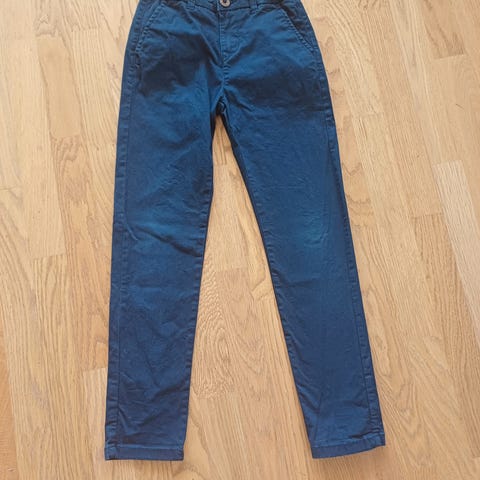 Selger lite og pent brukt dressbukse i fargen navy og hvit skjorte fra Kappahl (Hempton Republic) i str. 134 (skjorten har en liten flekk helt nederst). Mørkeblått slips følger med (se bilde). Selges samlet til kr 299,-