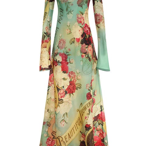Aldeles nydelig maxi kjole i silke. Print og fargekombinasjonen minner veldig om Zimmermann kjolene (se bilde 2 og siste bilde). Kjolen faller fint og kan brukes med og uten stropper.