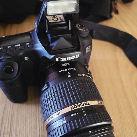 Følger med minnekort hvis trengs og 18-105mm f3.5-5.6 linse.