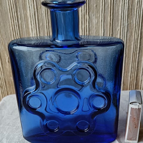 Vintage flott blå finsk vase kunstglass design Erkkitapio Siiroinen 1970-tallet