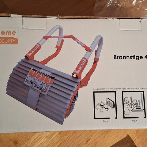 Brannstige 4,5 meter av merket Safebox, se filmer av den på Yotube. Fått i gave, aldri tatt ut av esken.