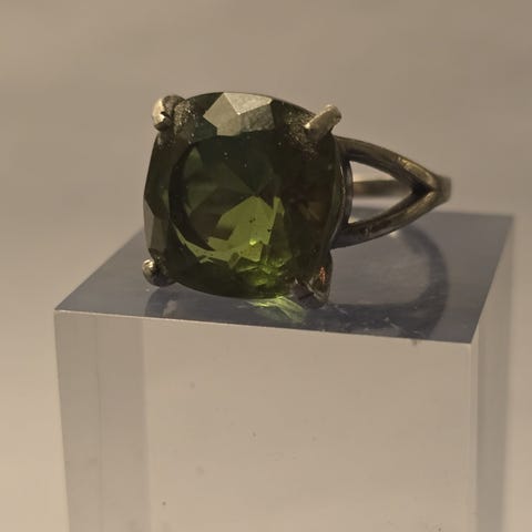 Ring i sølv 925 med nydelig fasettslipt eplegrønn sten10.90ct. Diam.:18mm.