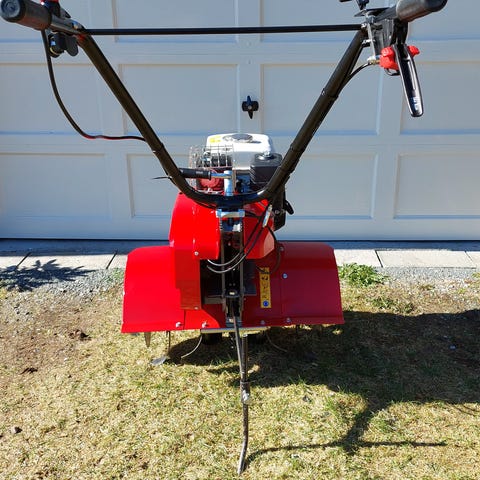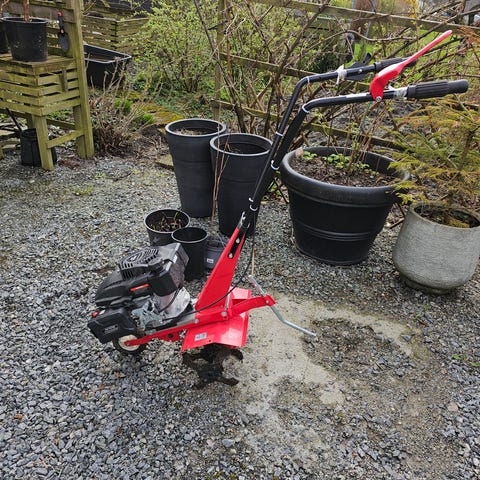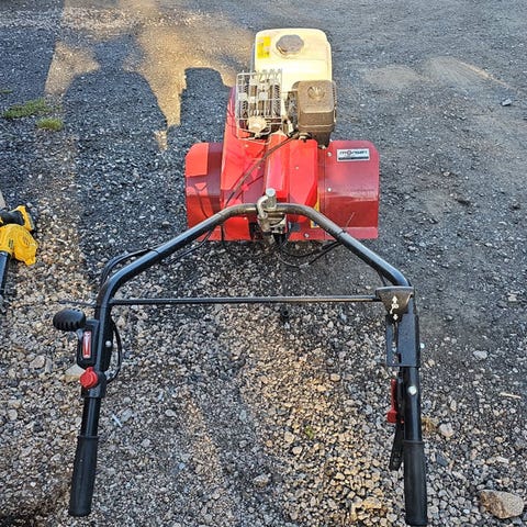 Hendig bensin jordfreser som fungerer slik den skal, billig til leie. Til opp fresing i hagen.