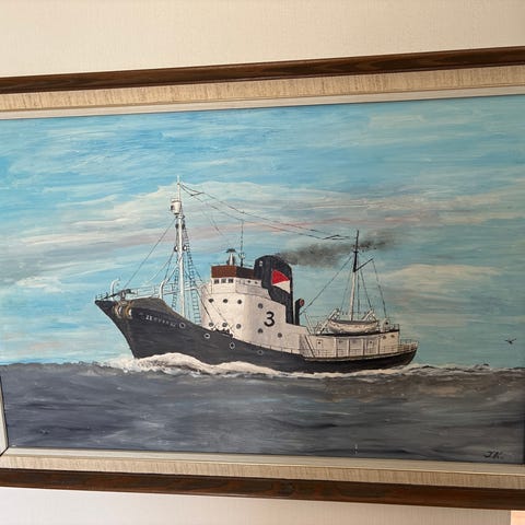 Eldre maleri, ukjent kunstner. Mulig signert av «Gullbrandsen». 39,5x23,8 cm. Malt på sponplate. Noe gulnet belegg som muligens kan fjernes! Spor etter innramming langs kanten.