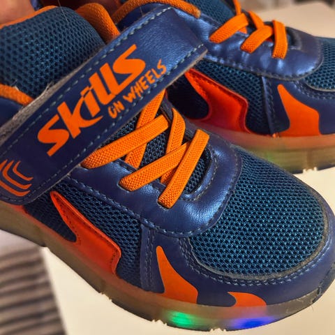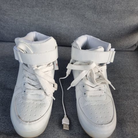Vakre Roller -joggesko med USB Lading Led Lysende Sole som kan brukes med 1 eller 2 hjul (eller uten dem).Det kreves ingen engangsbatterier, bare koble dem til med USB -kontakten og lade dem opp. 500 pr stk