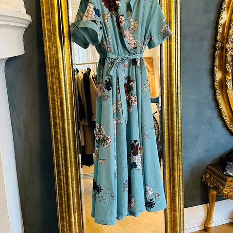 Kjole kjøpt i utlandet men aldri brukt. Den kan brukes fra xs-m. Lengden fra halsen ca 130 cm . Overdelen er ganske strech , og kan også brukes over skuldrene.