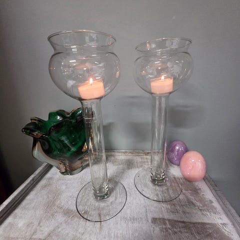 Pen lysestake i glass selges. H. 40 cm. Kan ikke sendes
