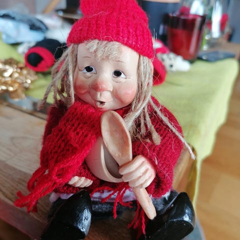 Nisse kone fra Hedlund selges for 100 kr . Kan sendes mot dekning av porto på 70 kr med post nord eller fiks ferdig som koster litt mer å sende med . Pakker godt. I bobleplast og papir ved sending