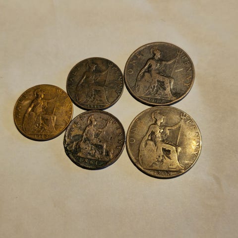 Gamle One Penny fra England, se beskrivelse for årstall (2408 Å)