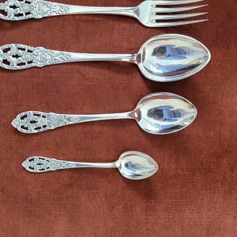 6 stykker dessertskjeer: lengde 14, bredde 3,3.