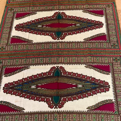 10. Slike stoff I flerfarget , designet og stilig. Målet er 155 lengden og bredden er 118. Kr 100.