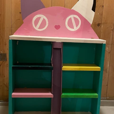 Vegghylle fra IKEAs barneserie. Noe små bruksmerker samt to klistremerker (se bilde). Har ikke forsøkt fjerne dem.