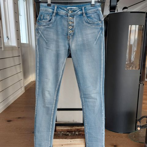 Lysblå jeans fra b.young i str. 28 med innerbenlengde 70. Veldig lite brukt.