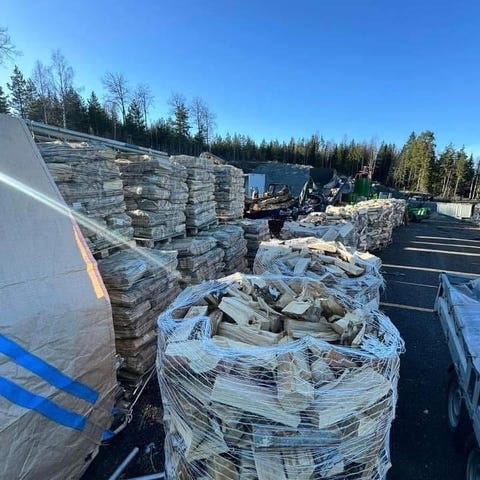 Nå finnes også 1000 liters håndstablede bjørkepaller på lager.