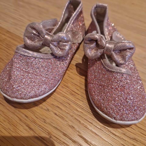 Nydelige pensko til ei lita prinsesse str 23. Skoene er pent brukt 2-3 ganger, men man ser at de er brukt. Skoene er kjøpt i Danmark, og nypris var ca 500-600 norske kr.