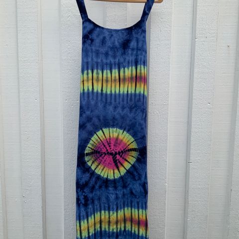 Løs og ledig batikk kjole i deilig myk og avkjølende polyesterblanding som gir et flott fall. Modellen er en Onesize, og vil passe flere størrelser. Delikate farger som vist på bildene. Kun prøvd og fremstår som ny. Lengden vil passe de som er fra 165 og høyere. Litt lang til meg som er 160.