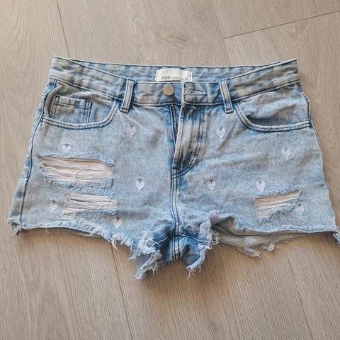 Lite brukt jeansshorts med striper i sidene selges rimelig. Str. 44.