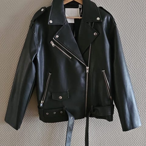 Tøff , svart, fora skinnjakke med trykk-knapper.