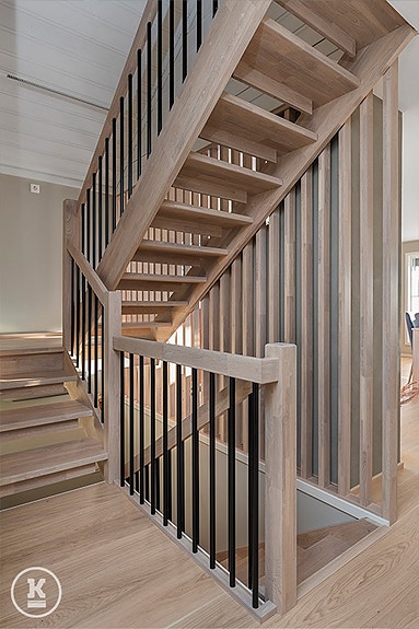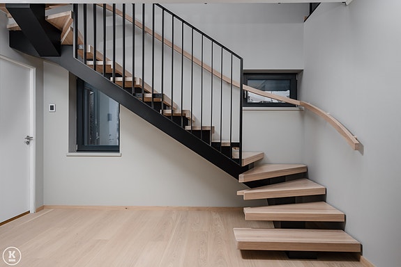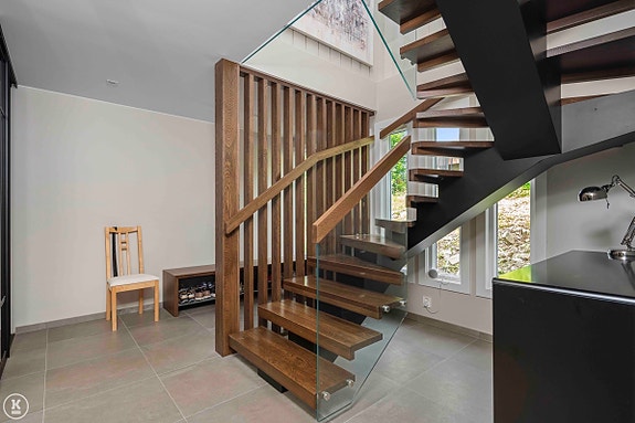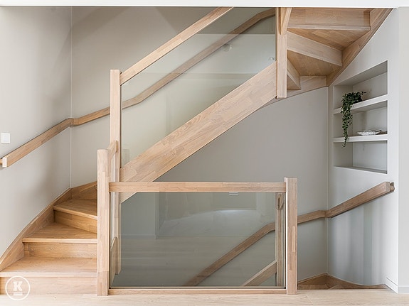 Vi lager alle typer trapper i tre med detaljer i glass og stål.