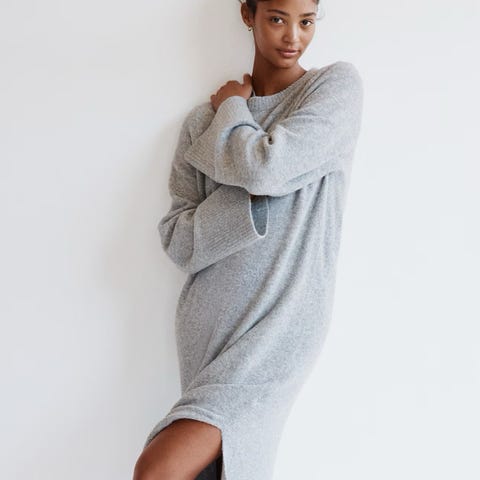 Pent og lite brukt strikkekjole. Vil si fargen er gråsort. Splitt på begge sider. Fin å ha over en shorts. Lett gjennomsiktig.