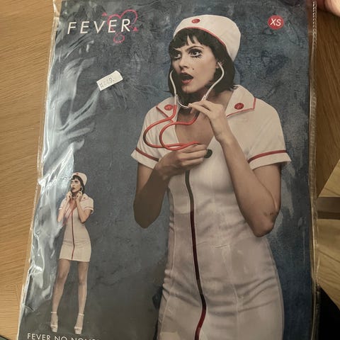 Passer størrelse small, med stretch. Sykepleierkostyme. Pent og lite brukt da det er litt stort til meg over brystet. Passer S-M. Hull til snøring i brystet (men snøring følger ikke med).