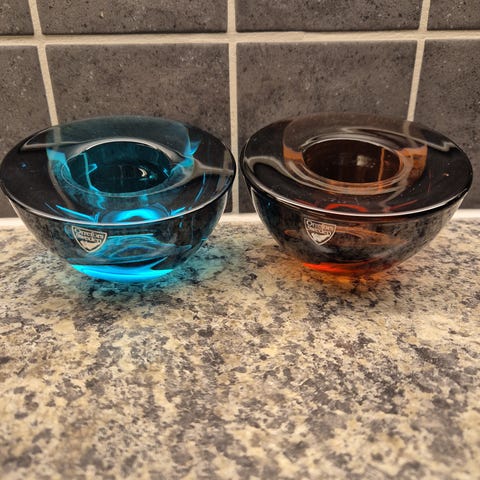 Orrefors lyslykt holder designer Anne Nilsson. Det var brukt kort tid. Som ny. Høyde 7,5 cm, bredde ca 11 cm, åpningen 4,5 cm . Kan sendes 79 kr med sporing
