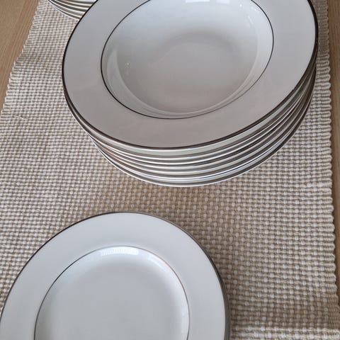Vi selger et ubrukt 36stk Fine Bone China tallerkensett.